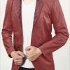 The Harper Burnt Red Leather blazer is a directional twist on a classic style designed with a distinctive quilted lapel construction for a contemporary edge. Wear it smart, or wear it casual – it will go with anything stylish.