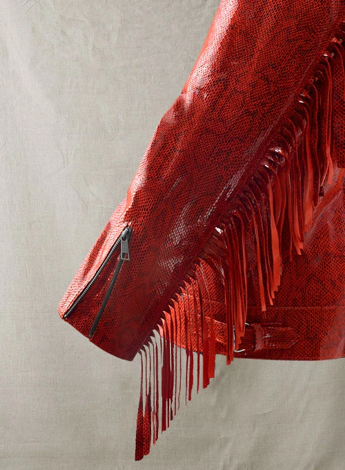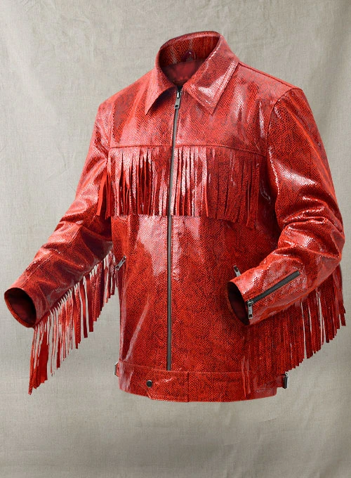 Fringes have an incredibly cool factor that will get heads to turn and watch jaws drop. So if you were thinking about a fringes leather jacket for an amazingly unique look, then our Shiny Red Python Leather Jacket will be an ideal pick.