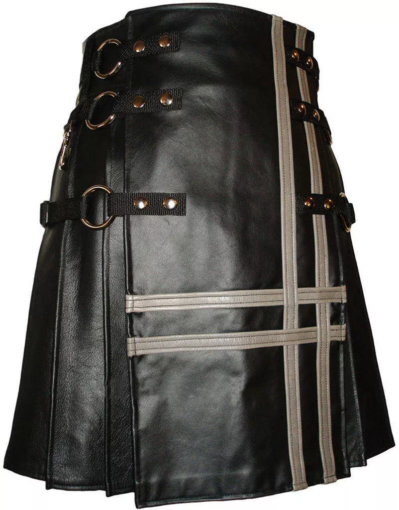 The Leather kilt with grey stripes is a modification of our classic leather kilt and best choice for a person who wants to stand out in a crowd to show off the modern style and Celtic tradition at the same time. leather kilt is made from the best quality sheep leather.