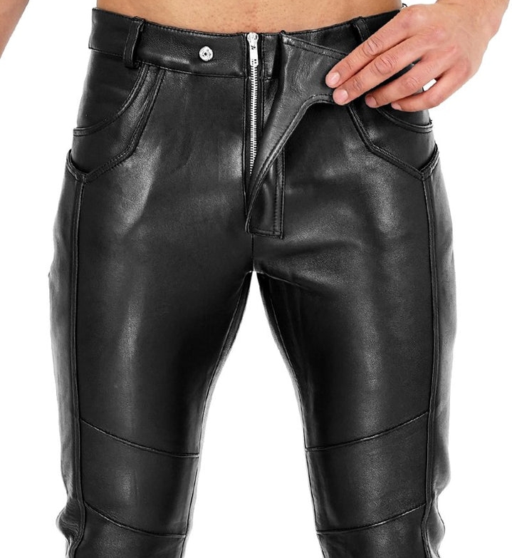 These thick original Sheep leather pants have a low waist and are designed to have a tight fit around the butt and the upper leg. If you are going in a complete leather look then this leather pant is best choice for you. These leather jeans will increase your fashion and look.