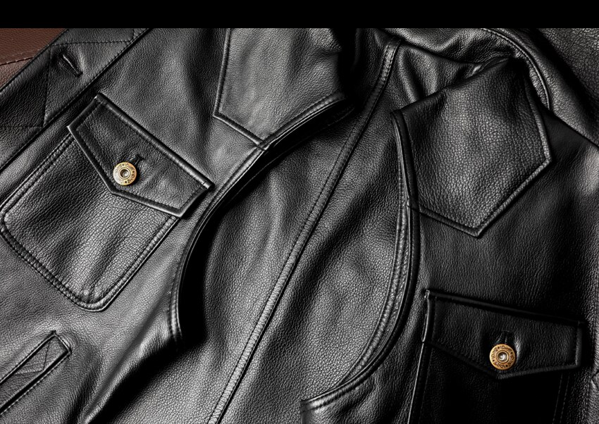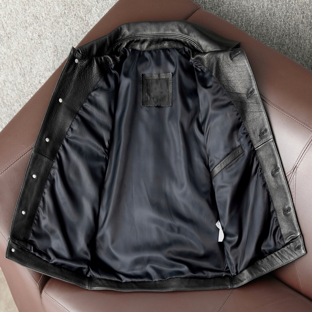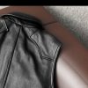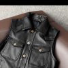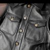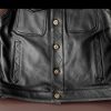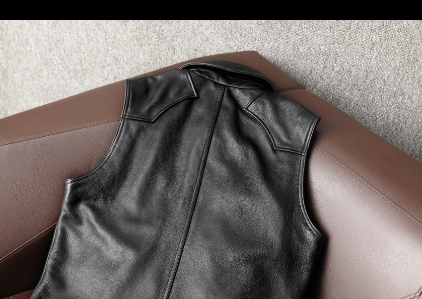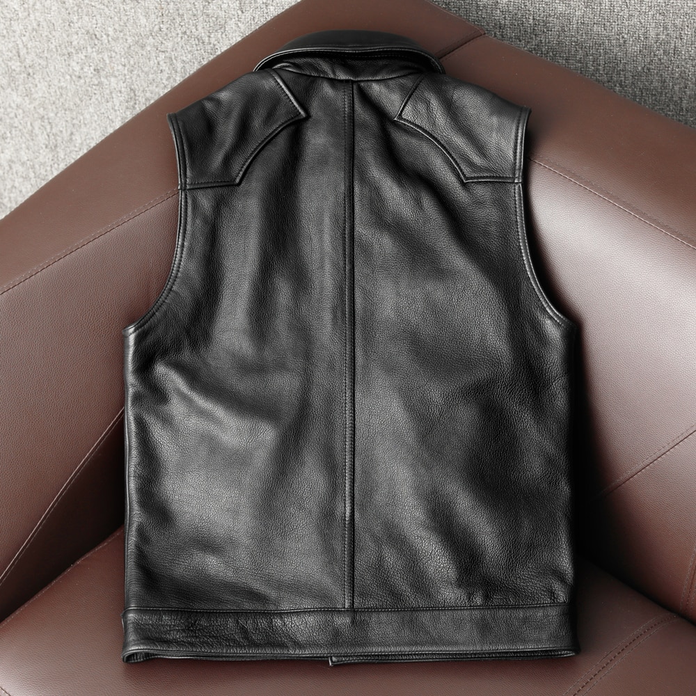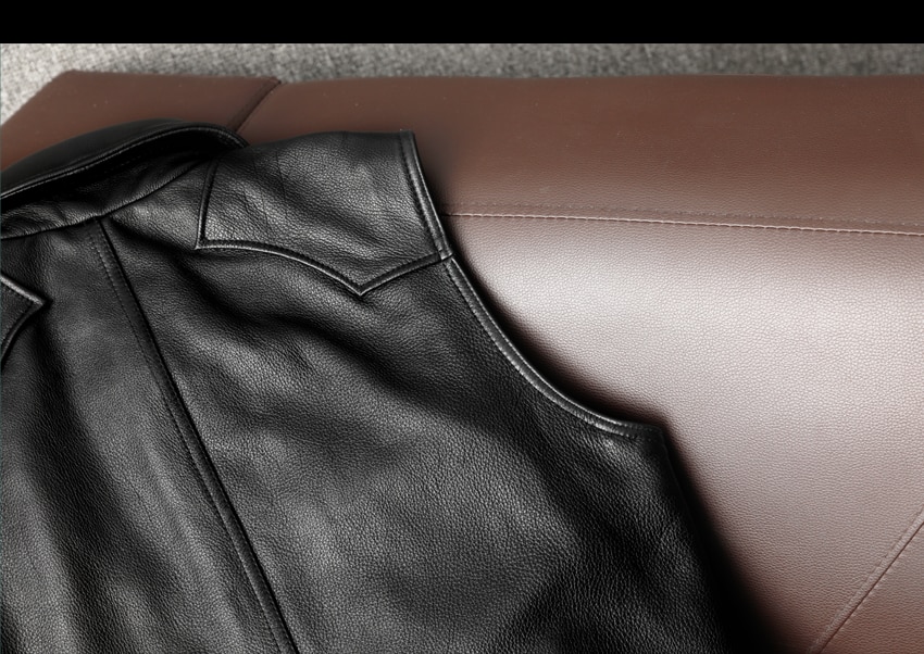 This biker genuine leather waistcoat is closed with gun metal buttons.