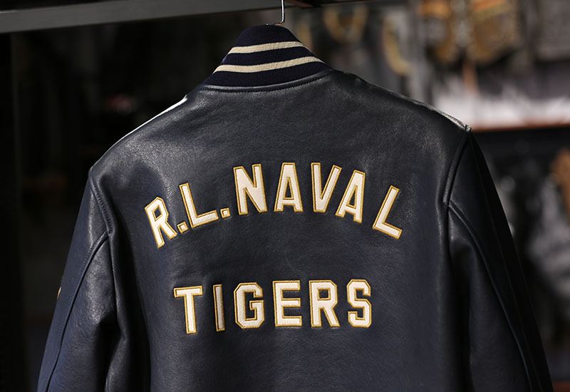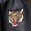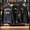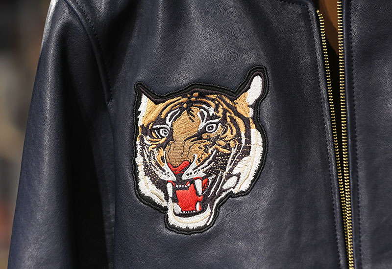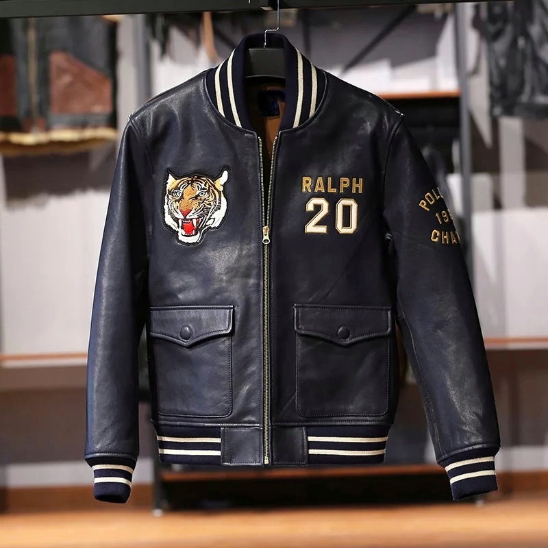 Top Quality stand collar real leather baseball jacket tiger embroidery on Chest.